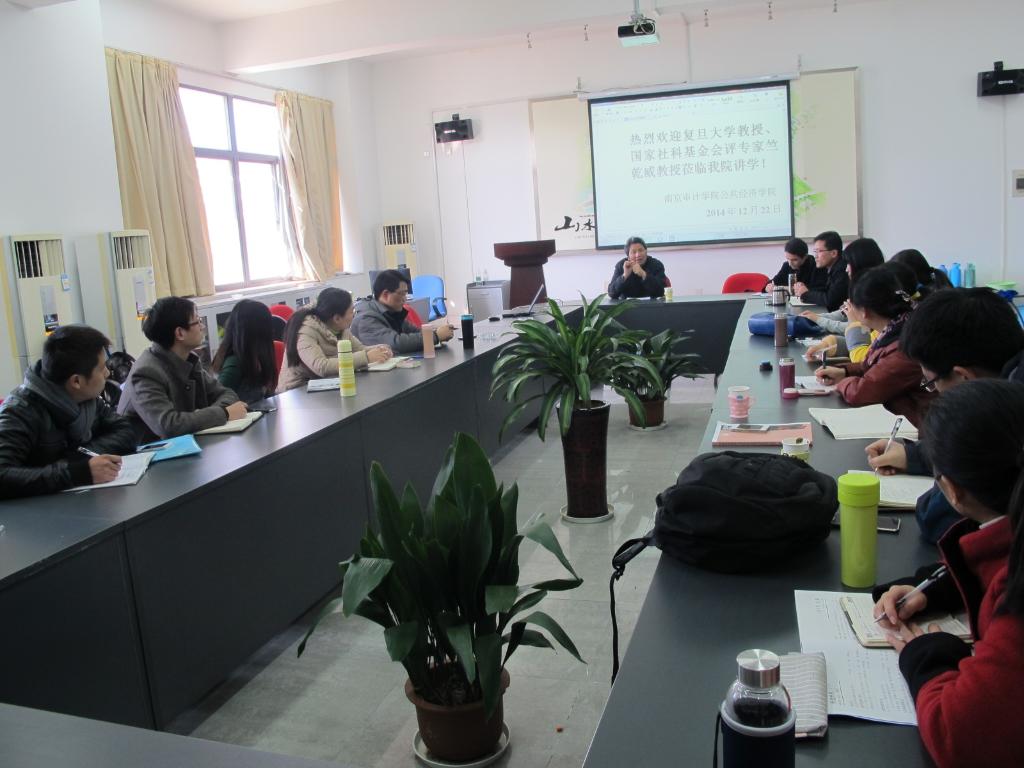 12月22日下午,复旦大学国际关系与公共事务学院博士生导师、国家社科基金会评专家竺乾威教授应邀来a片直播网 做报告。报告分两个阶段,第一阶段是在敏达305会议室进行,就老师们热切关注的国家社科基金项目申报相关问题进行提问、诊断式交流,第二阶段在敏达学术报告厅为师生做主题为《改革的逻辑:机构改革的回顾与展望》的报告。讲座过程中来自金融、经贸及a片直播网 20多位教师、a片直播网 各专业学生约80名参与聆听了讲座。讲座由公共经济学院后小仙院长主持。