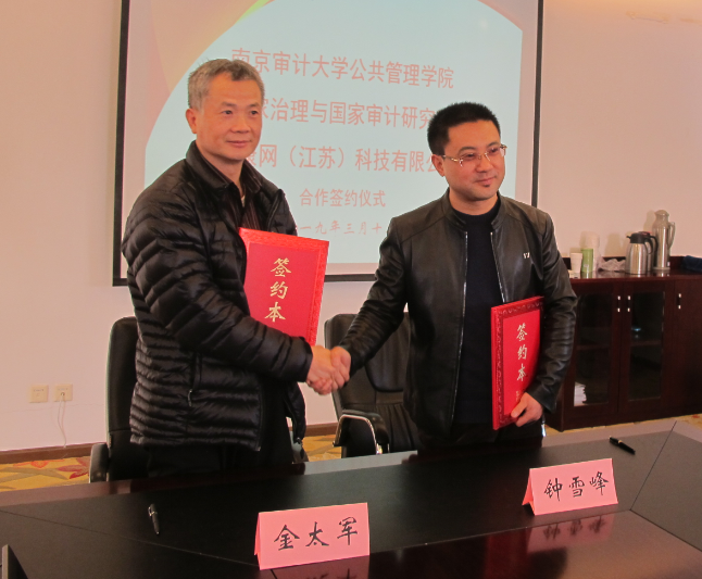 裴育校长介绍了学校的发展历程,从经济学家的视角分析了国家治理与国家审计的广阔发展前景,以及如何将审计参与到政府治理当中。裴校长说:”校企合作的开始要着重巩固合作构架,确立科学的合作发展导向,争取产生具有标志性的成果,充分体现其社会价值,并希望双方的合作进行的更远、更好。”科研部副部长洪涛就双方合作表达了自己的看法并做了精彩的评论。他认为,双方合作项目具有鲜明的人文情怀,校企发展的终极服务是一致的,都是以“健康”为共同的目标,并即兴创作诗一首:“二月春风染柳烟,审园正是好花天,同心共筑幸福梦,南审润天把手牵”,表达了对双方未来的合作发展充满期待。