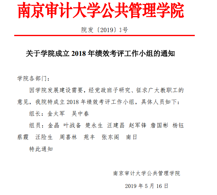 关于学院成立2018年绩效考评工作小组的通知