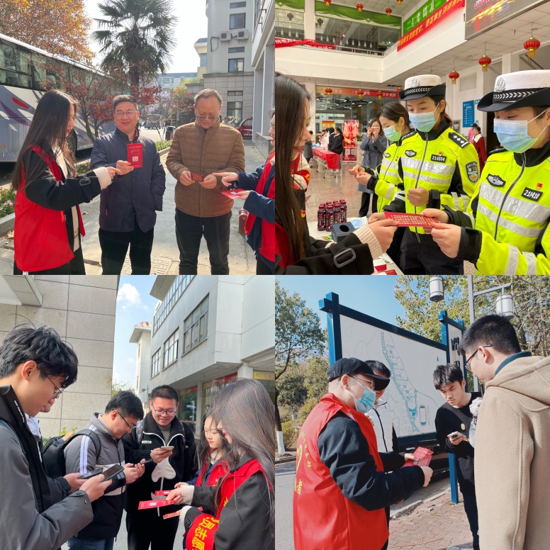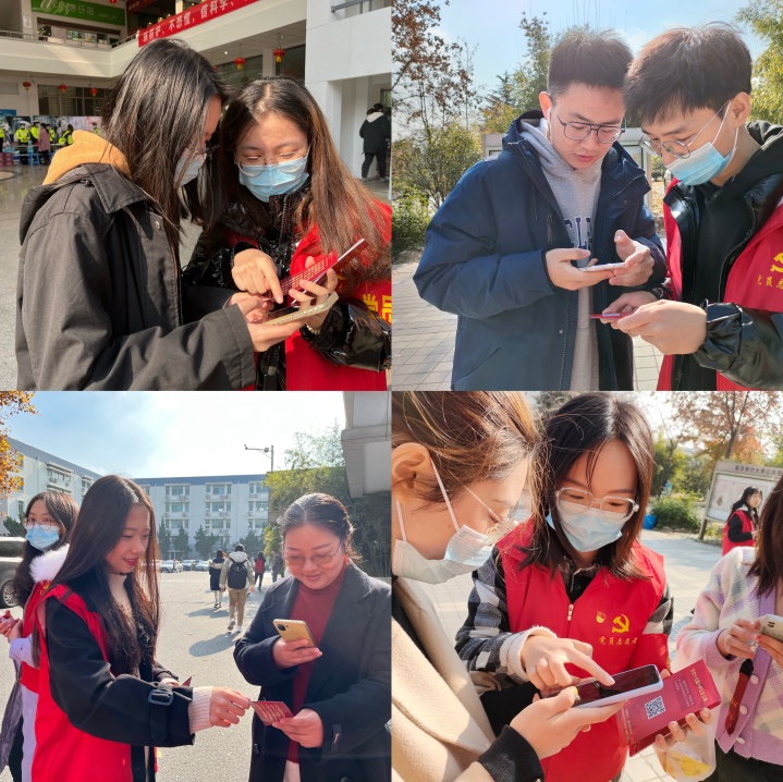 活动现场,党员志愿者们用生动且通俗易懂的语言,围绕党的十九届六中全会精神、党史学习等方面内容,图文并茂介绍了党的十九届六中全会的重大成就和历史意义,并且以传单、二维码以及H5小程序的形式,让师生可以随时随地了解到十九届六中全会的一些细节与深度解读,实现入耳入脑更入心。