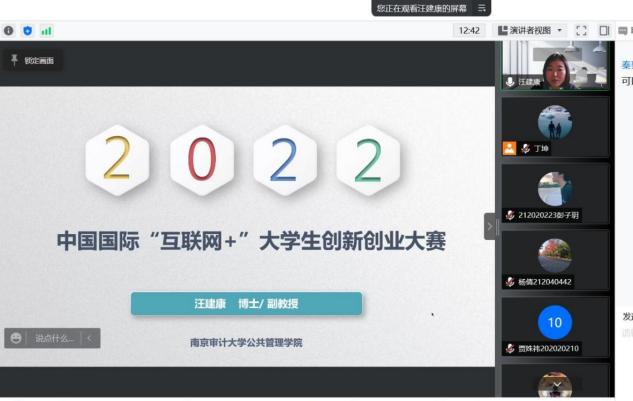 2022年3月30日下午14:00-15:30,公共管理学院举办的“互联网+”大赛分享交流讲座在线上腾讯会议顺利召开。本次讲座诚邀a片直播网 汪建康副教授主讲,由公共管理学院学生参加。此次讲座旨在为学生讲授“互联网+”大赛相关的一系列基本问题,增加同学们对大赛项目的了解。
