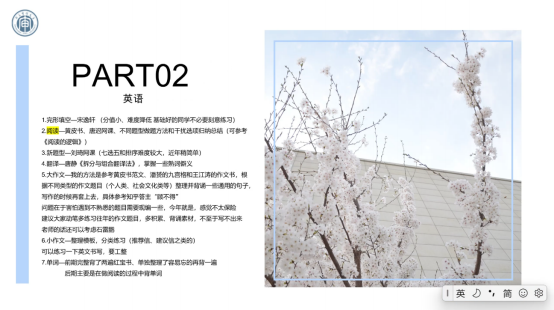 除此之外,几位同学都针对不同的考研科目如何备战做出了详细的讲解,分享了自己在考研过程中的学习方法、时间规划、网课或教材的选择、经验教训、心得体悟等等。
