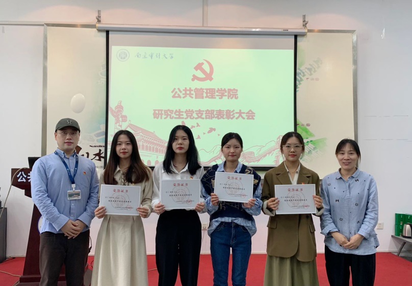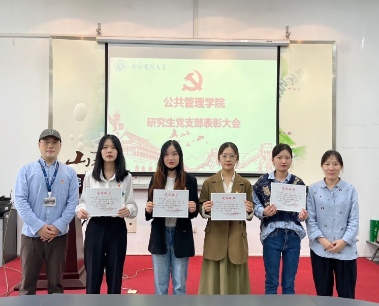 首先是公共管理学院研究生党支部表彰大会,受学院党委书记金晶教授委托,由左昌盛老师、张燕萍老师为上一届支部委员会委员颁发聘书,并为上一学年学院优秀学生党员和支委会优秀学干颁发荣誉证书。