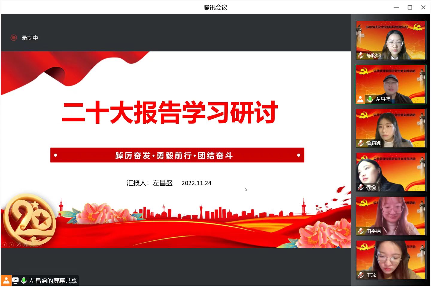 20221124日,按照公共管理学院党委统一部署,a片直播网 研究生党支部于线上召开支部党课学习暨“我为师生办实事”研究生支部调研座谈会。活动由支部书记左昌盛主持,学院党委书记金晶,学院党委副书记、副院长汪建昌及学院副院长赵军锋出席本次活动。