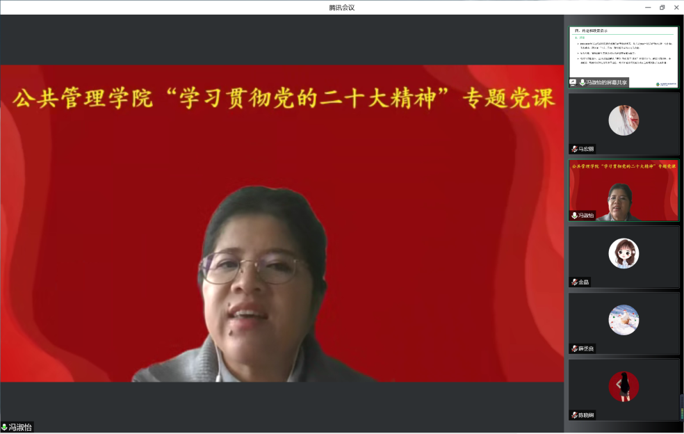 冯淑怡教授为公共管理学院师生党员作“学习贯彻党的二十大精神”专题党课