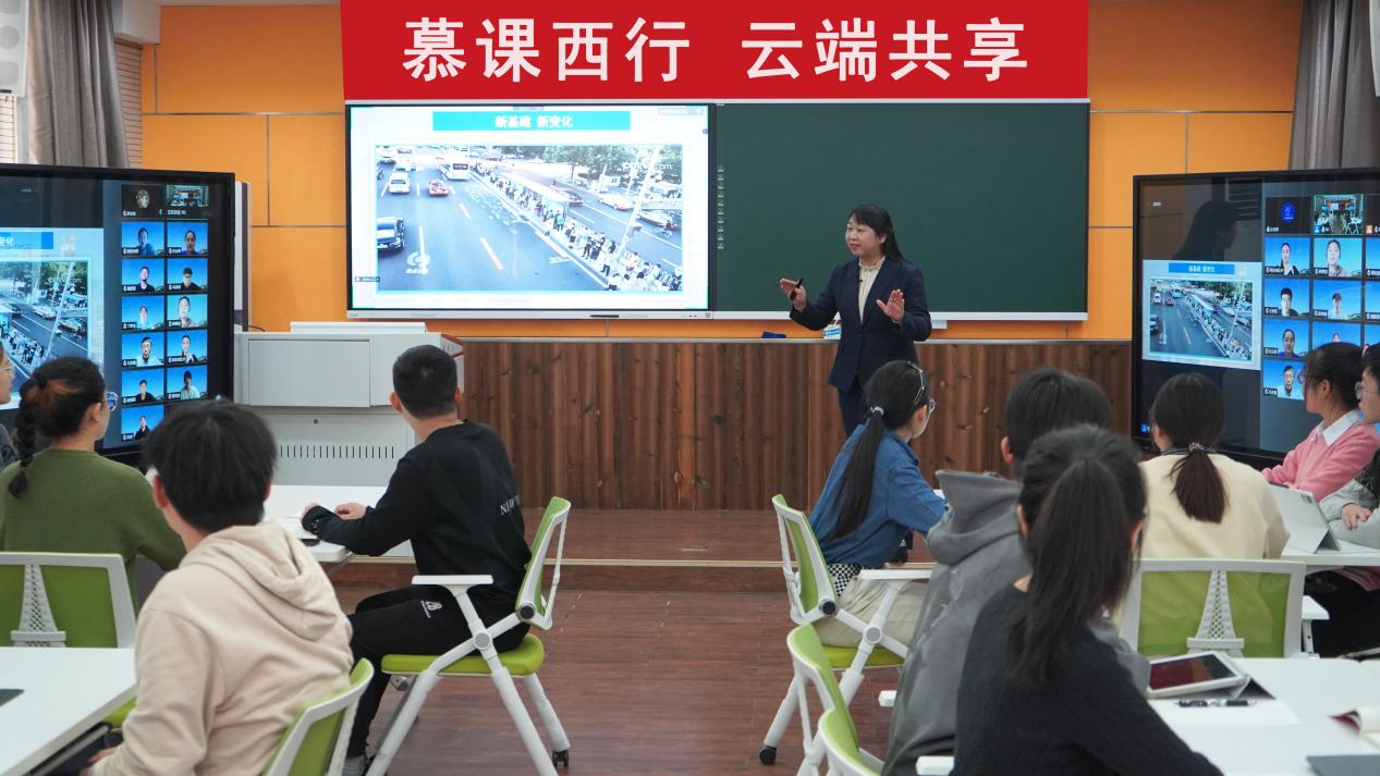 公共管理学院教授金晶作为国家一流专业建设点负责人,开启“慕课西行、云端共享”《城市管理学》同步课堂教学。两校师生实时交流、课程内容丰富生动、学生积极参与互动、课堂气氛融洽和谐,新颖的教学模式让相隔数千里的学生同时体会到了这门课程的魅力。