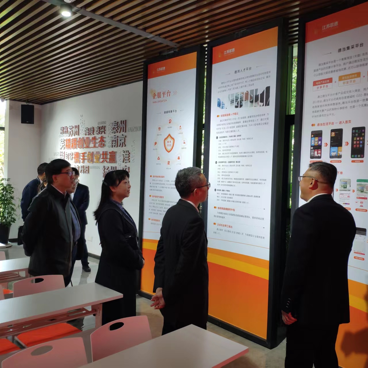 4月26日,党委常委、副校长姜海赴江苏歌德创业服务有限公司开展访企拓岗活动。江苏歌德创业服务有限公司董事长吕麟、副总裁吕小龙出席活动。公共管理学院党委书记金晶、院长叶战备、副书记、副院长汪建昌、劳动与社会保障系主任楚永生、PPE系主任汪建康参加走访。