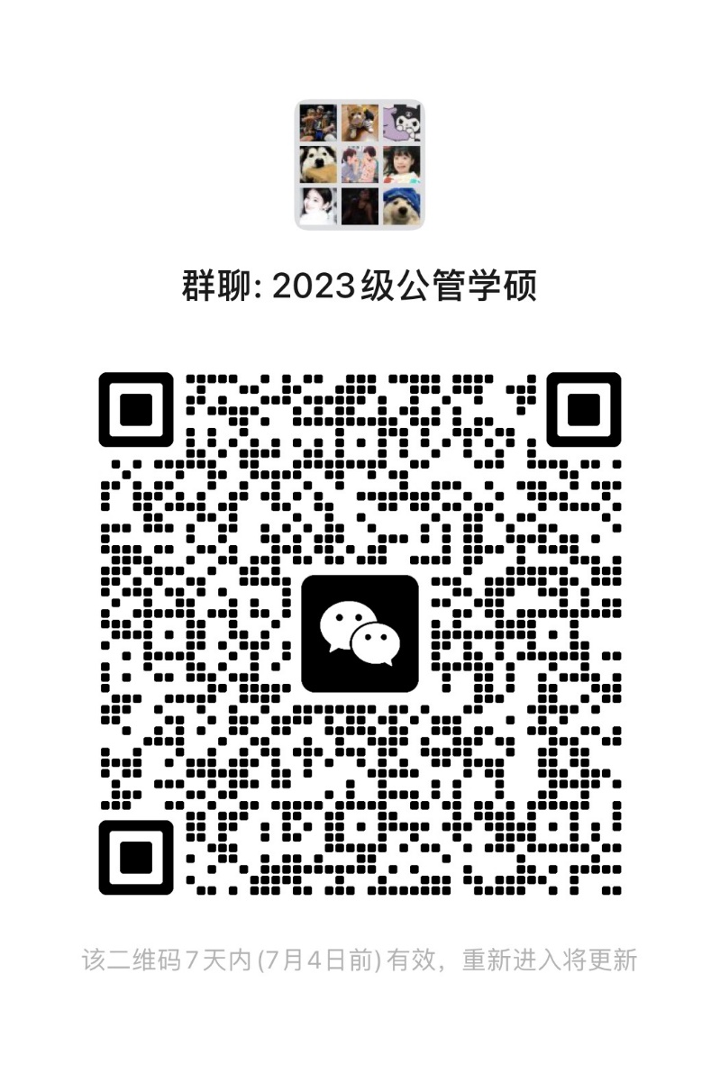 为了更好地发布信息、增进沟通,我们建立了2023级公共管理学硕微信群。二维码如下: