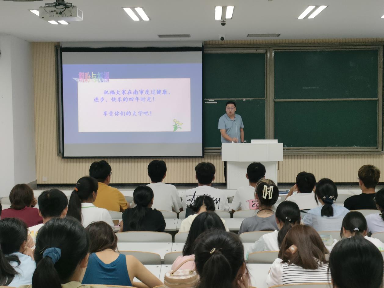 PPE专业系主任汪建康向新生客观地介绍了PPE专业当前发展现状及光明的发展前景,同时通过历届学生的当前现状向同学们展现了行政管理专业的未来发展情况,希望同学们直面且深入地认识该专业。此外,汪老师建议同学们在大学生活中多一点主动性和自觉性,主动联系新生导师,主动涉猎更多的知识,多看多写多思考,让大学生活充实起来。