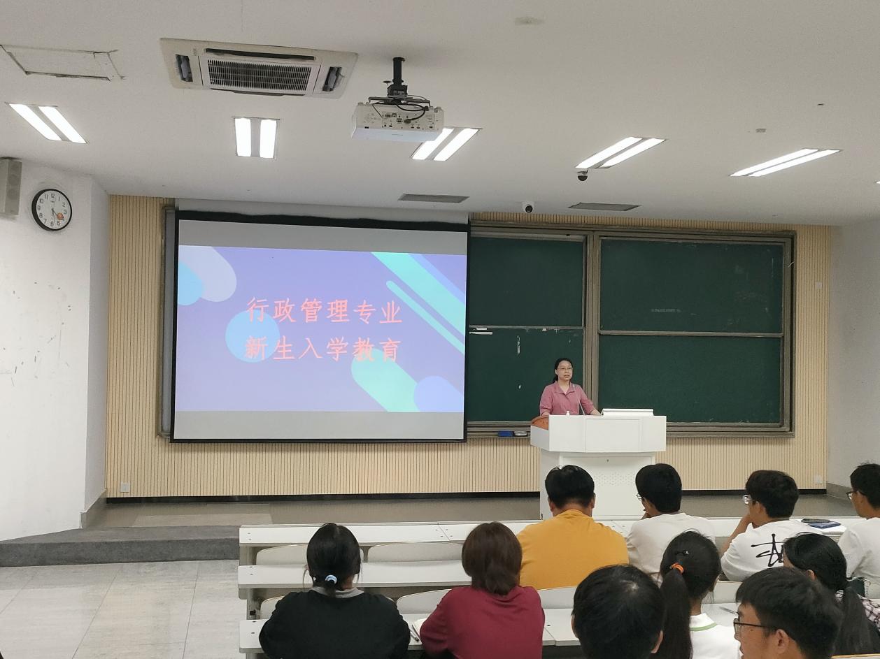 紧接着,行政管理专业系主任杨钰热烈欢迎新生加入行政管理的大家庭。通过介绍行政管理学的发展历程,杨老师告诉同学们要想拥有更好的发展,需要更多的自主学习。杨钰老师向在场的新生提出了一个问题——“什么样的大学生活值得一过”,在新生思考之际,杨老师向同学们展示了历届行政管理专业学生的毕业去向,并希望同学们能够深入思考,带着问题充实且快乐地度过大学四年。