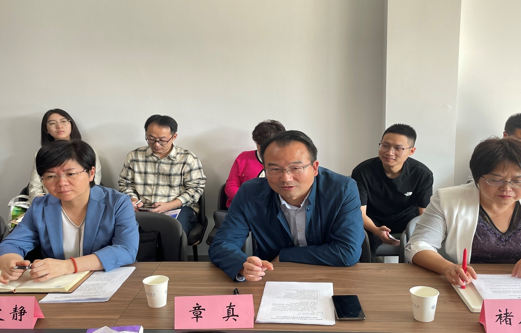 浦口区人民医院张文静书记、浦口区中医院章真书记以及浦口区疾控中心王文文书记分别就双方的合作事宜进行深入的交流。张文静书记明确提出,要加强学校与医学行业的紧密联系,以实现双方的互利共赢。章真书记则强调,此次合作既是一次机遇,又是一次挑战,并主张推动学校教育与医疗行业的相互借鉴和融合。王文文书记表示,区疾控中心的职责在于预防和应急,以此为契机,积极推动与公共管理学院的深度合作,从而实现更广领域、更深层次的产教融合。