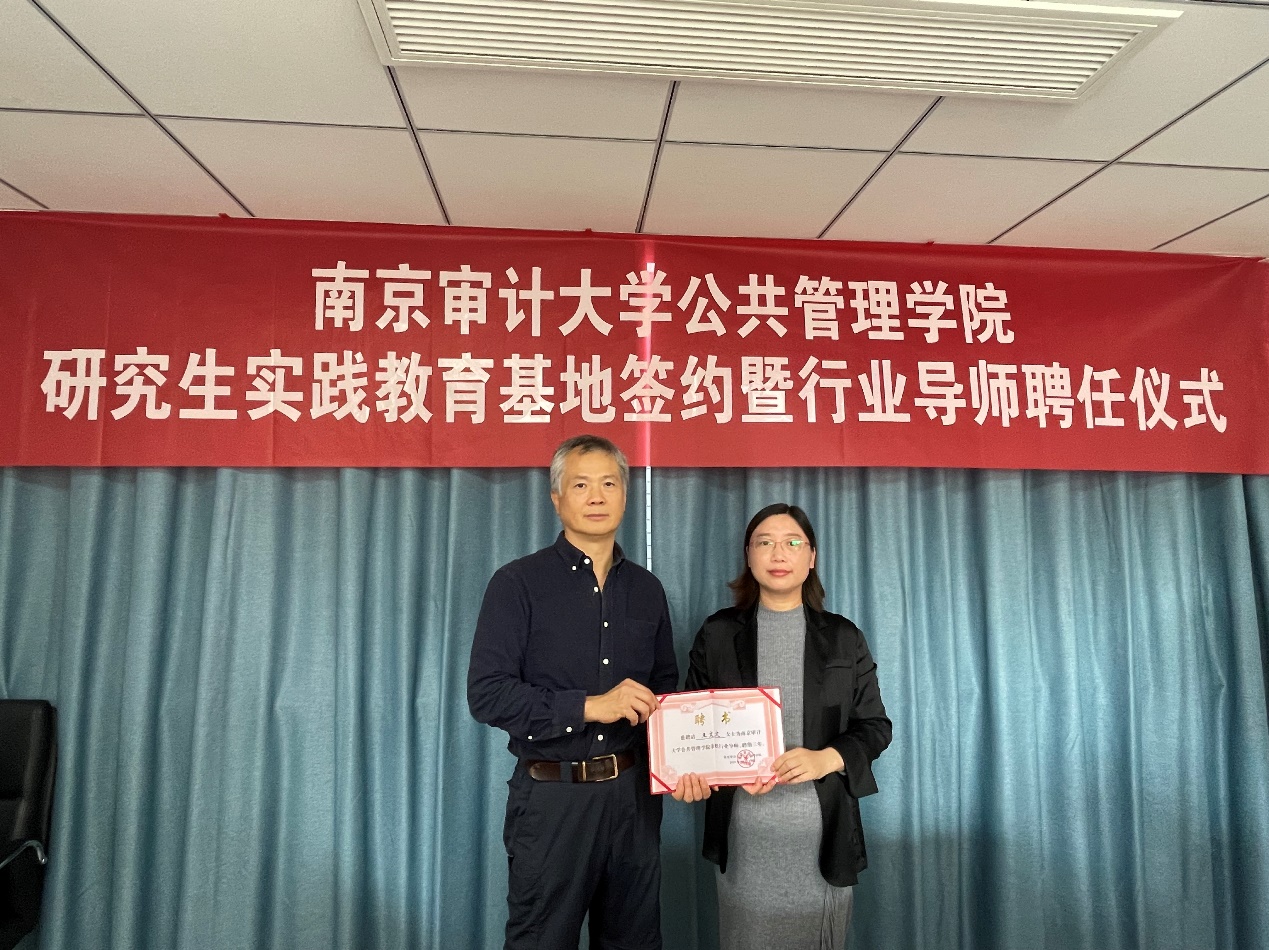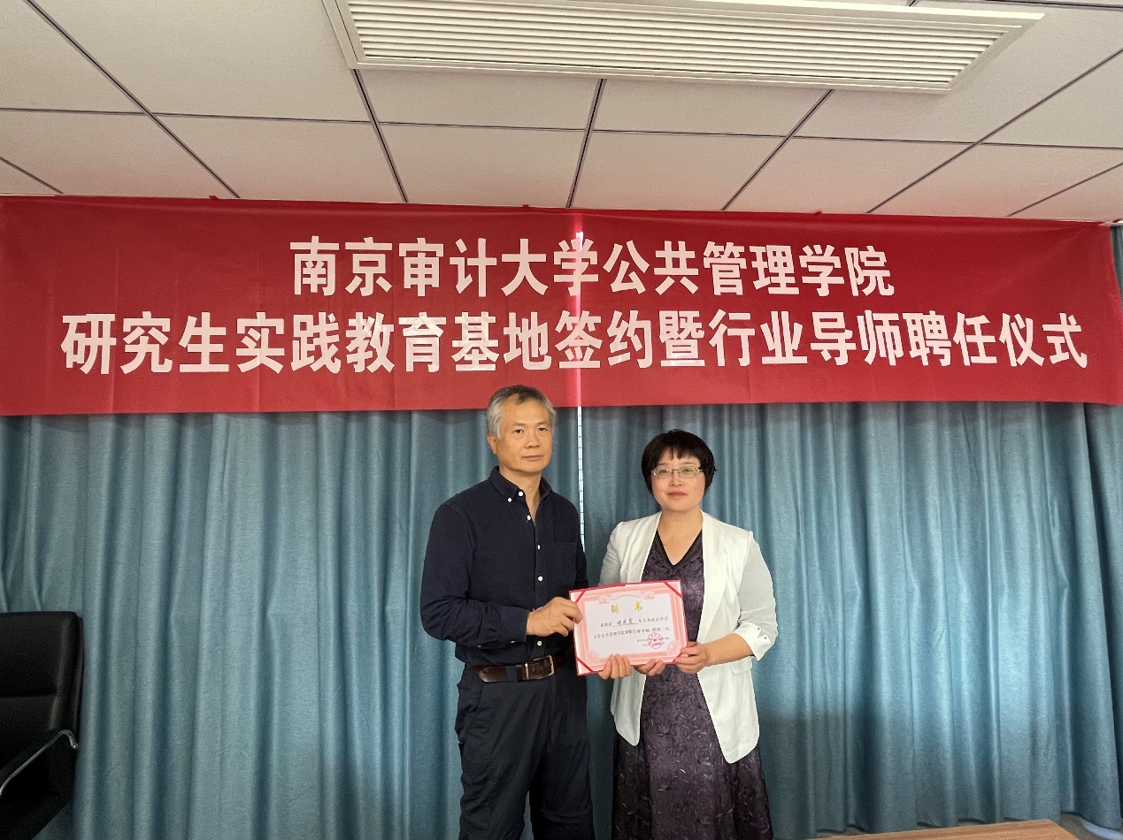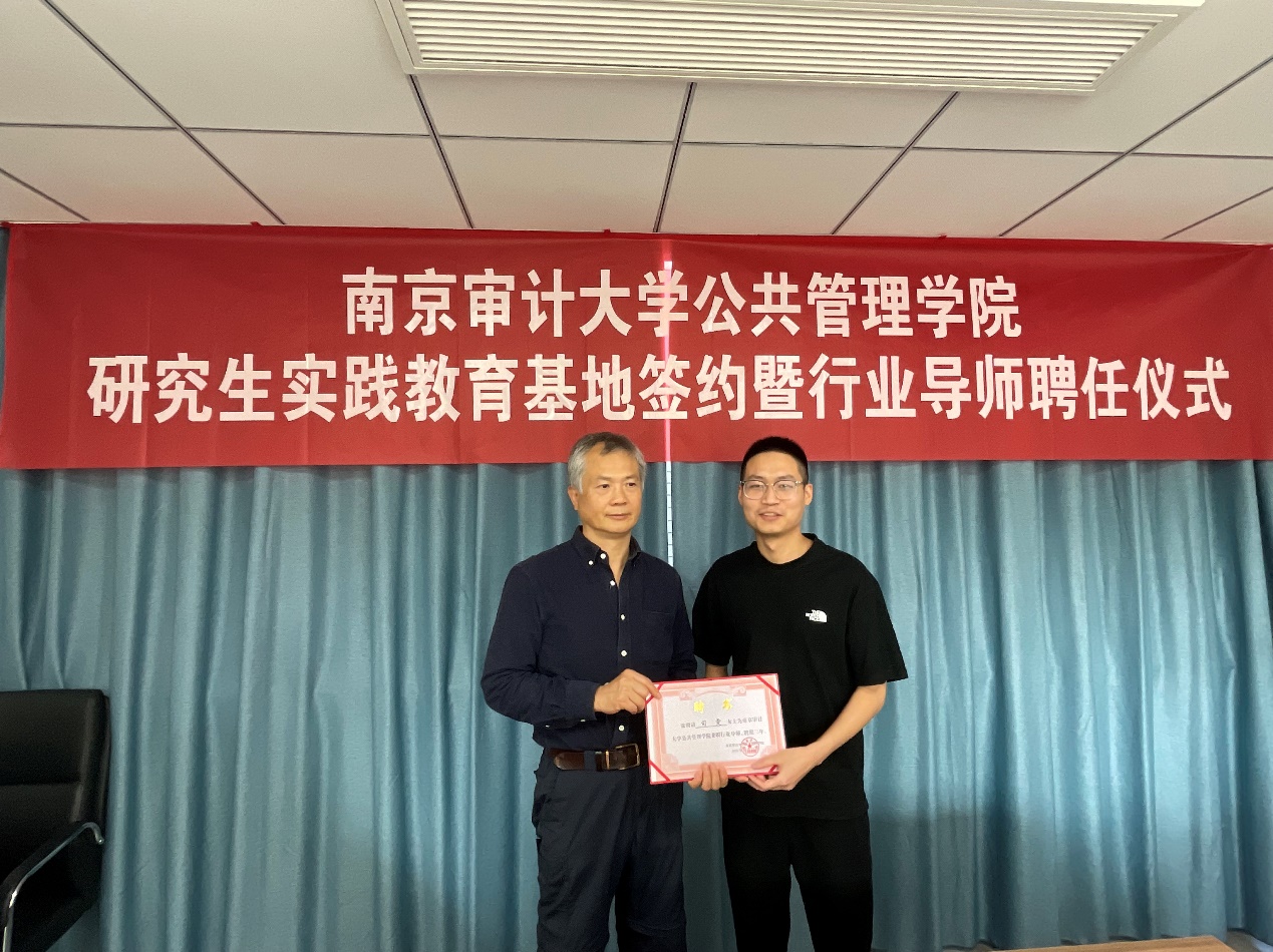 仪式上,双方达成合作共识,就共建研究生实践教育基地签约,随后金太军教授为聘任行业导师颁发聘书。