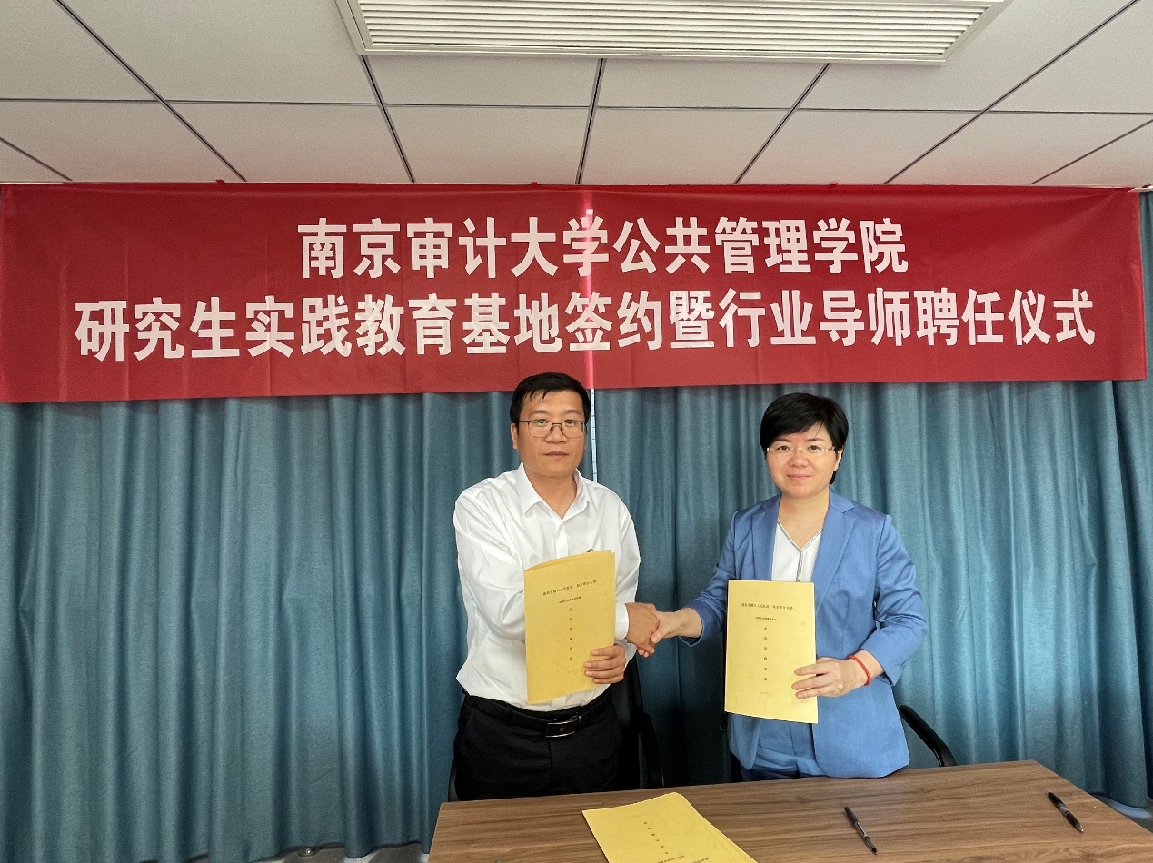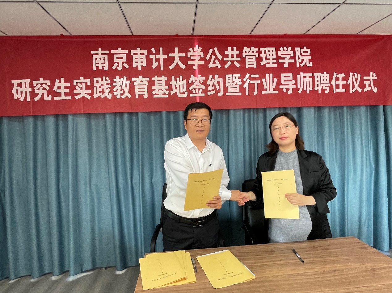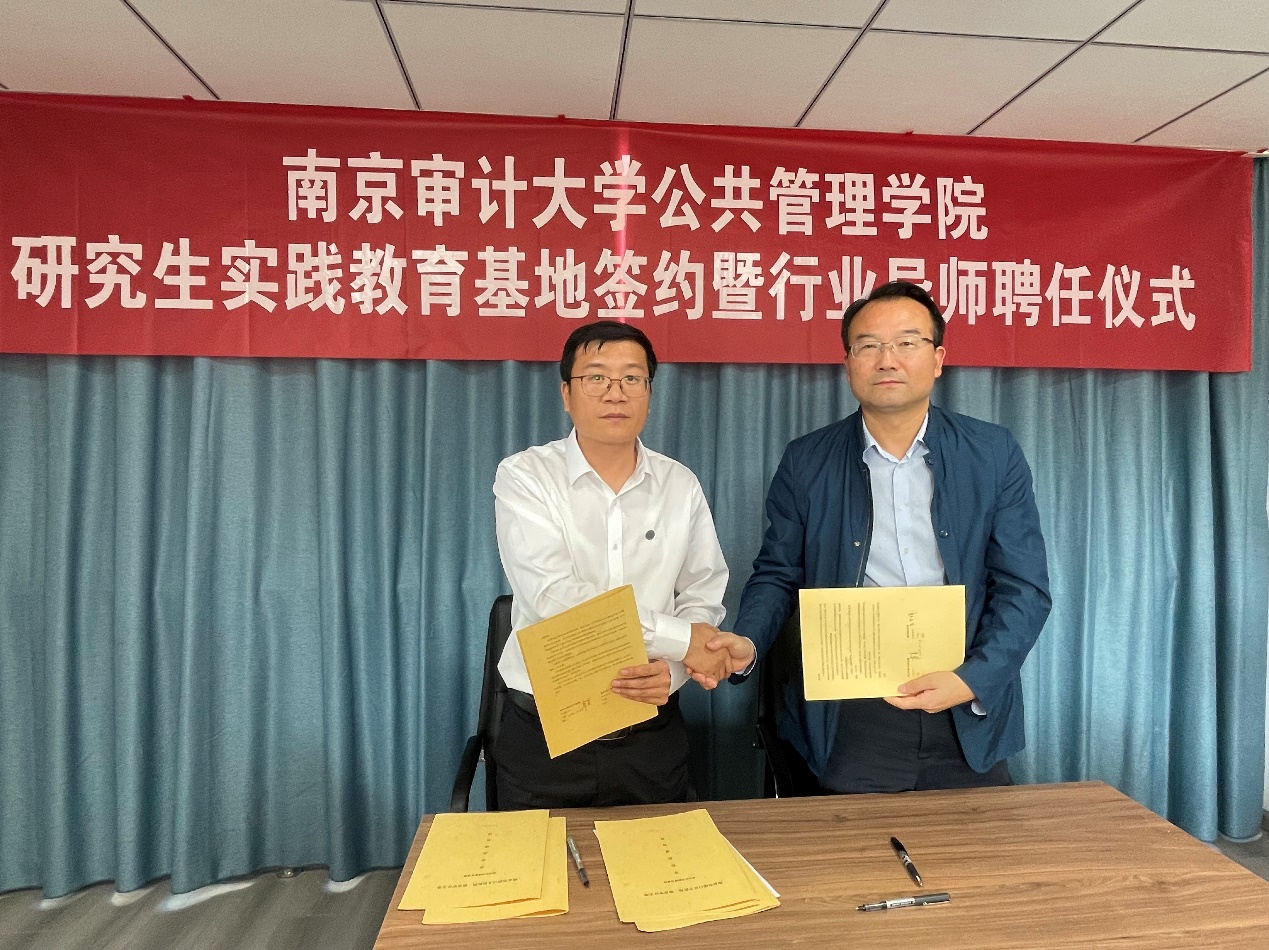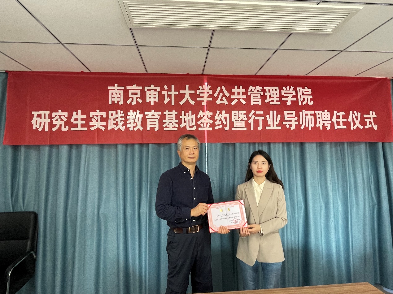仪式上,双方达成合作共识,就共建研究生实践教育基地签约,随后金太军教授为聘任行业导师颁发聘书。