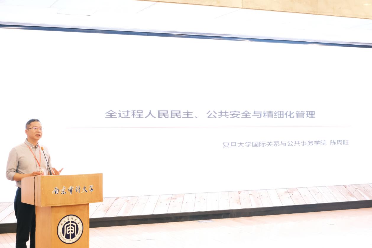 复旦大学国际关系与公共事务学院副院长陈周旺教授的演讲主题是“全过程人民民主、公共安全与精细化管理”。陈周旺教授首先对精细化管理进行了阐析,并基于对新江湾河道“航行自由”等治理案例的分析,引出了全过程人民民主下的“参与式”公共安全构筑模式。