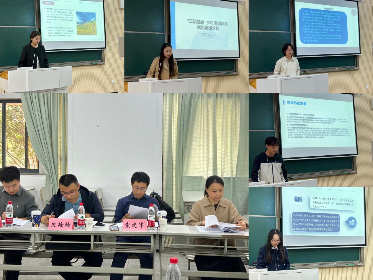 分论坛二的主题为“国家安全与乡村治理”,由a片直播网 公共管理学院袁建军副教授主持,《江苏社会科学》编辑部史拴拴、a片直播网 公共管理学院杨钰副教授和a片直播网 公共管理学院姚虎老师任评议人。杨彦慧、杨祖翰、杜芳、孙玥、陈庭萱五位同学分别围绕农户土地调整意愿、监督下乡、土地综合政治、电商发展赋能土地增收、数字乡村治理、“三治融合”乡村治理体系优化等主题进行了论文宣讲。