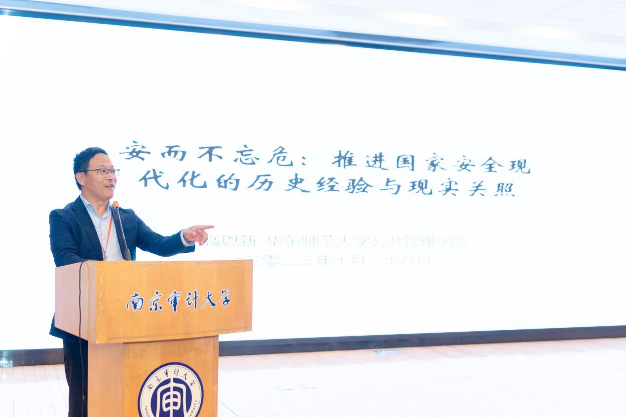 华东师范大学公共管理学院党委书记高恩新教授以“安而不忘危:推进国家安全现代化的历史经验与现实关照”为主题进行演讲。高恩新教授将国家安全划分为政权安全、社会安全和族群安全三大类,并从历史到现实系统介绍了三类安全的演进变化,以及以政权安全为根本、社会安全为基础、制度安全为依托的稳定不变的内核,最终提出了国家安全现代化战略框架。